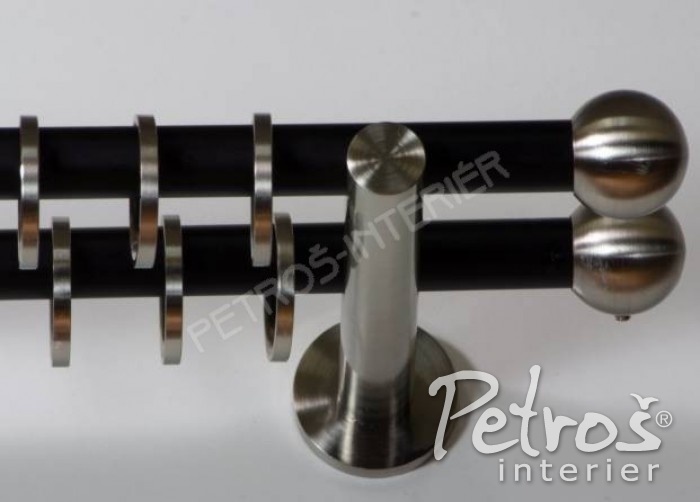 Kombinace černé a stříbrné barvy je stále trendová nejen na záclonách a závěsech, ale velmi sluší i garnýžím. Právě garnyže Firenze Mix, které se vyrábějí v kombinaci černá – nerez, tento trend osobitým způsobem podporují a doplňují.
