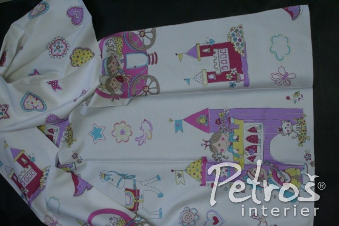 Dětské závěsy Leti jaou potištěny pohádkovým motivem s princeznami. Tyto závěsy jsou ze 35 procent bavlněné.