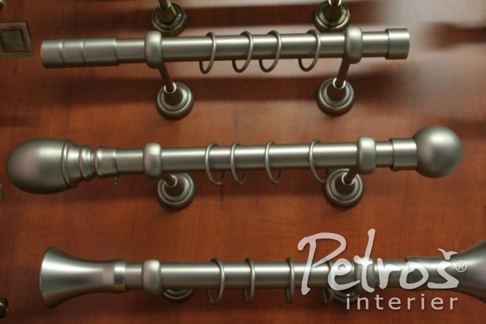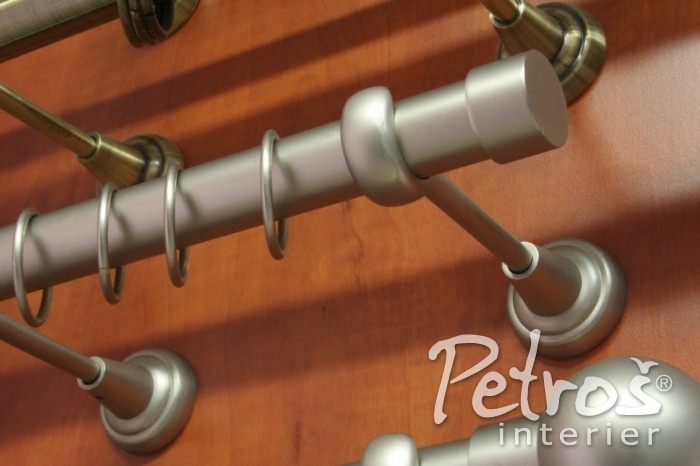 MATNĚ STŘÍBRNÉ GARNÝŽE Bologna LUX s koncovkou Luna, která se používá hlavně pro zadní záclonovou tyč.