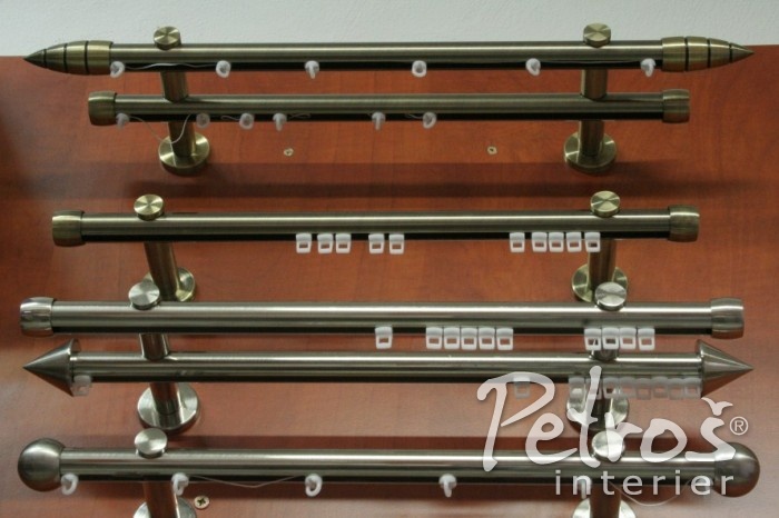 Druhou novinkou jsou zcela nové garnýže Palermo. Jsou to kulaté garnýže s drážkou na jezdce o průměru 20 mm a v nabídce jsou k uchycení do stropu i do stěny. Tyto garnýže můžete dostat v kuse až do délky 4 metry. Vybrat si můžete buď v barvě mosaz antik (starozlaté), nebo ve stříbrné barvě Chrom mat.