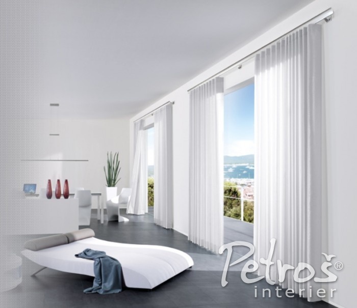 Otočné jezdce se v garnýžích Interstil W1 pohybují v nenápadných pojezdových drážkách, takže uchycení záclon a závěsů je téměř neviditelné a díky tomu neruší výsledný perfektní dojem.
