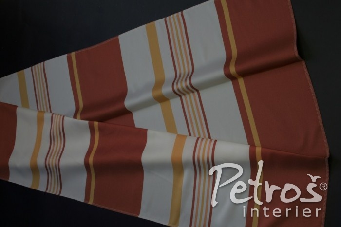 Velmi efektní dekorační tkanina W 8416 je mimořádně vhodná pro římské rolety a japonské stěny. Originální záclony – závěsy W 8416 jsou specifické tím, že si je můžete zvolit buď v šíři 150 centimetrů, nebo ve výšce 300 centimetrů, přičemž u šíře 150 cm jsou pruhy vodorovné a u výšky 300 centimetrů jsou pruhy svislé (bez olůvka).