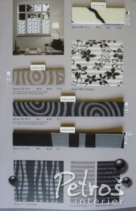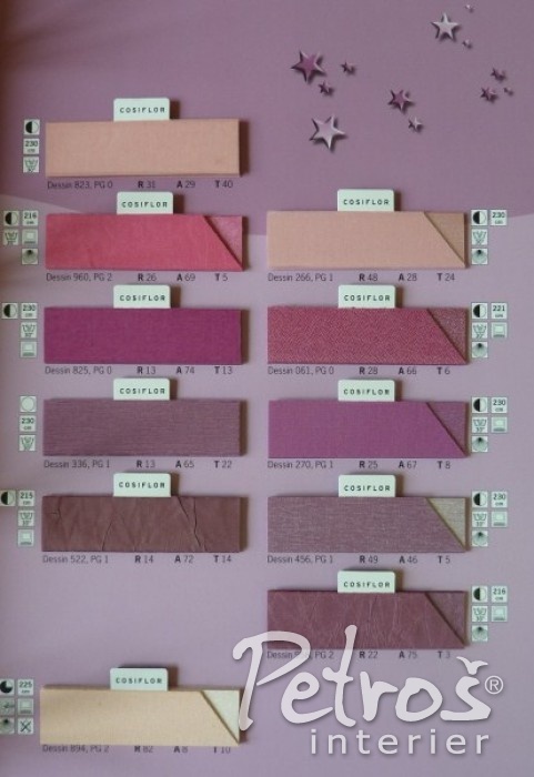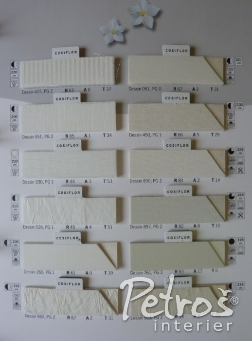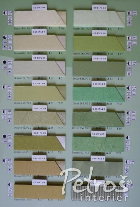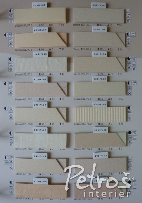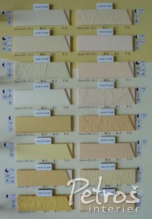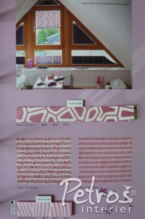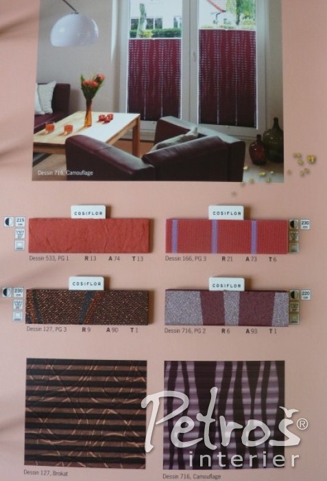 Pro Vaši lepší představu o množství typů a vzorů látek na plissé zde orientačně přinášíme jeden ze vzorníků.