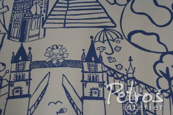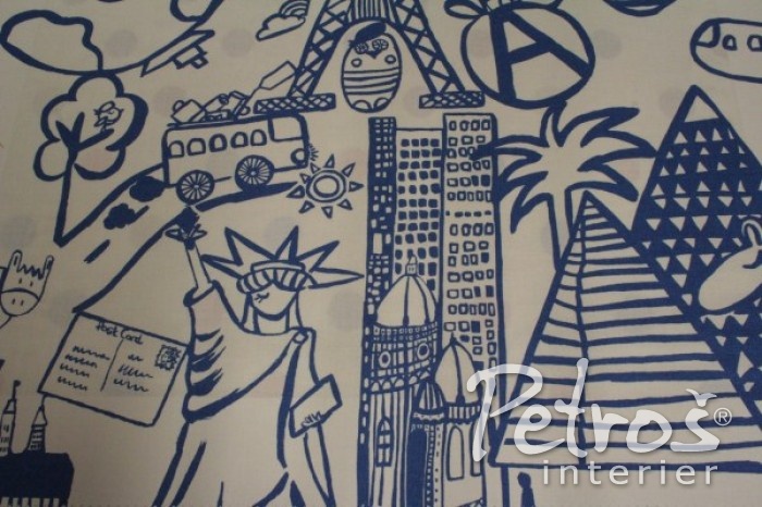 Bavlněné dětské závěsy Destination Cobalt se dají hezky doplnit tapetou na zeď Panorama Cobalt. Závěsytapety jsou v bílomodré kombinaci.