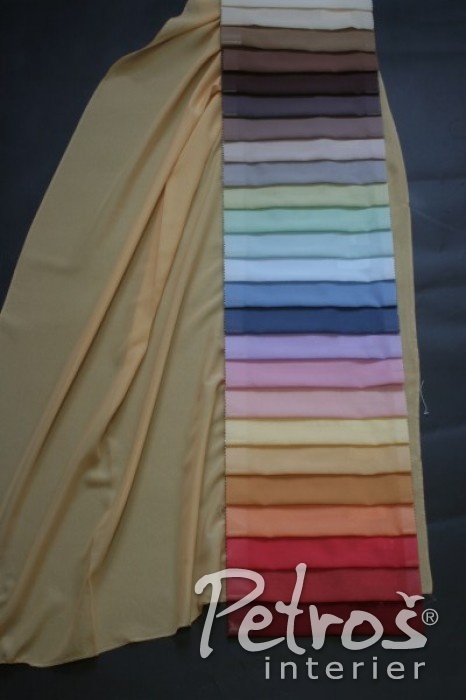 Tyto jemné hladké jednobarevné nehořlavé záclony z materiálu Trevira CS si můžete vybrat ve 26 barvách.