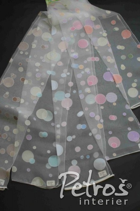 Tyto dětské záclony s motivem pestrobarevných bublin jsou k dostání v pěti barevných kombinacích. Záclony jsou ve výšce 290 centimetrů a jsou s olůvkem.