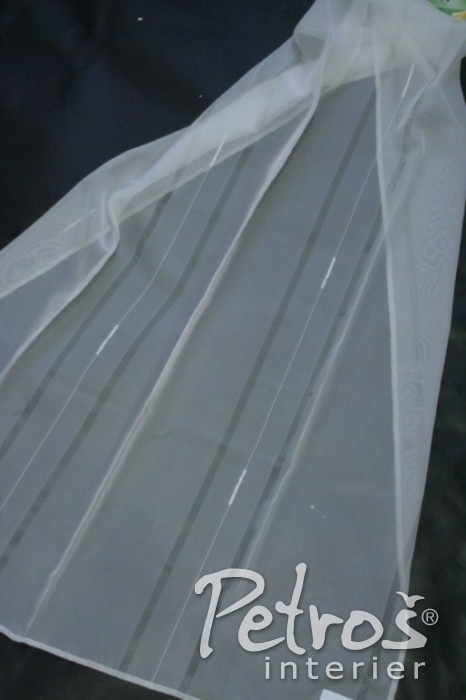 Záclony 109580/01 jsou vyrobeny ve smetanové barvě s jemnými žinylkovými proužky. Tyto záclony jsou vhodné i na římské rolety.