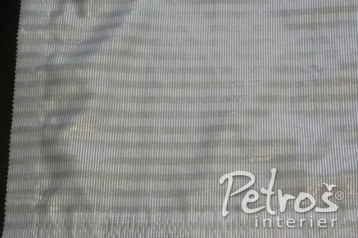 Designové záclony Glitz Flash 06 Crystal mají vzor vodorovných stříbřitých proužků. Záclony jsou vyrobeny ve výšce 300 centimetrů.