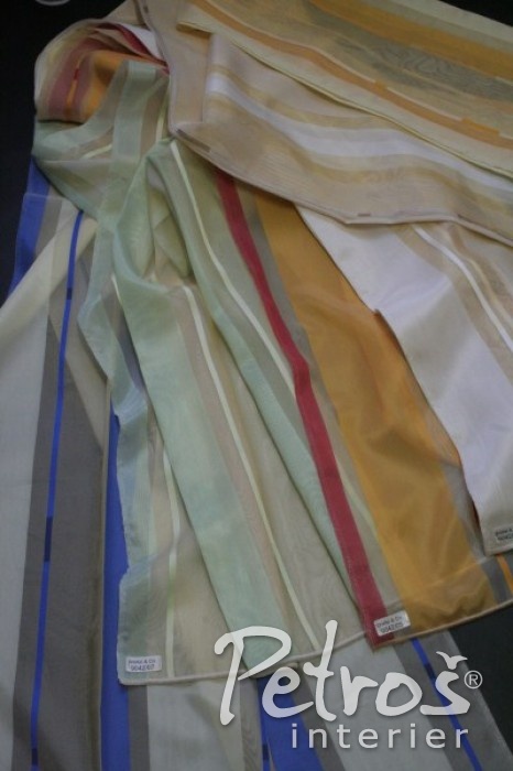 Záclony z organzy 109042 s barevnými pruhy nabízíme v šesti barevných variantách a v několika výškách.