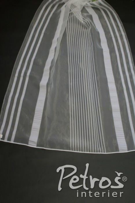 Tyto záclony z organzy v krémové barvě mají vzor různě širokých pruhů tón v tónu. Vyrobeny jsou ve výšce 275 centimetrů.