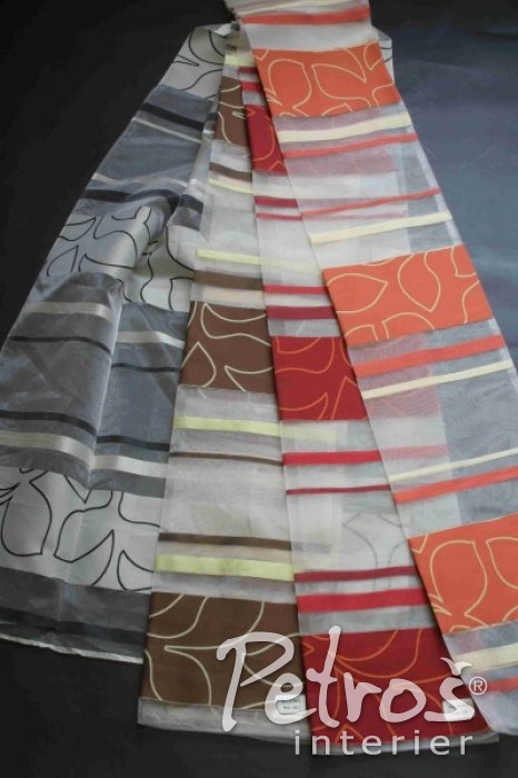 Tyto záclony kombinují pruhy z jemné organzy s hustěji tkanými barevnými pruhy a jemným stylizovaným přírodním vzorkem. Záclony nabízíme ve výšce 150 centimetrů.