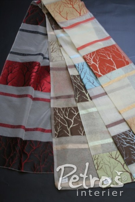 Tyto záclony kombinují pruhy z jemné organzy s hustěji tkanými barevnými pruhy a jemným stylizovaným přírodním vzorkem. Záclony jsou vyrobeny ve výšce 150 centimetrů. Vybrat si je můžete v pěti barevných variantách.