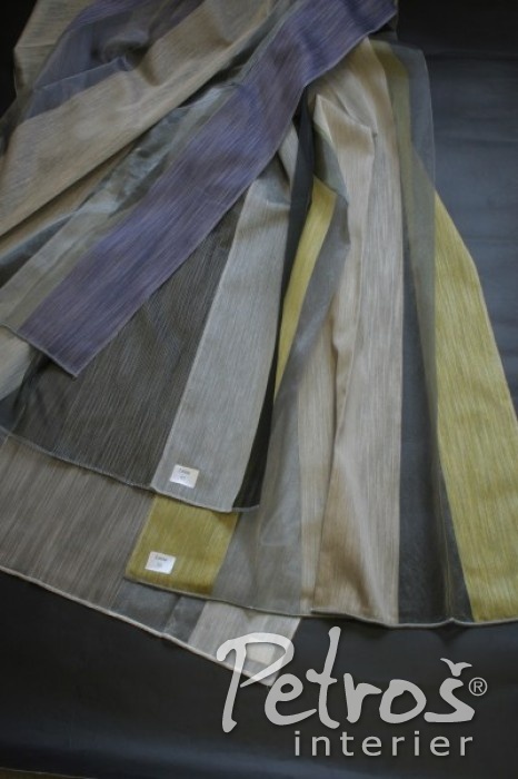 Záclony Lente KH mají vzor z průhledné organzy, která se střídá s hustěji tkanými barevnými pruhy. Tyto záclony jsou vyrobeny ve výšce 300 centimetrů a jsou opatřeny olůvkem.