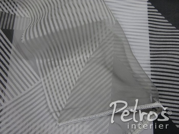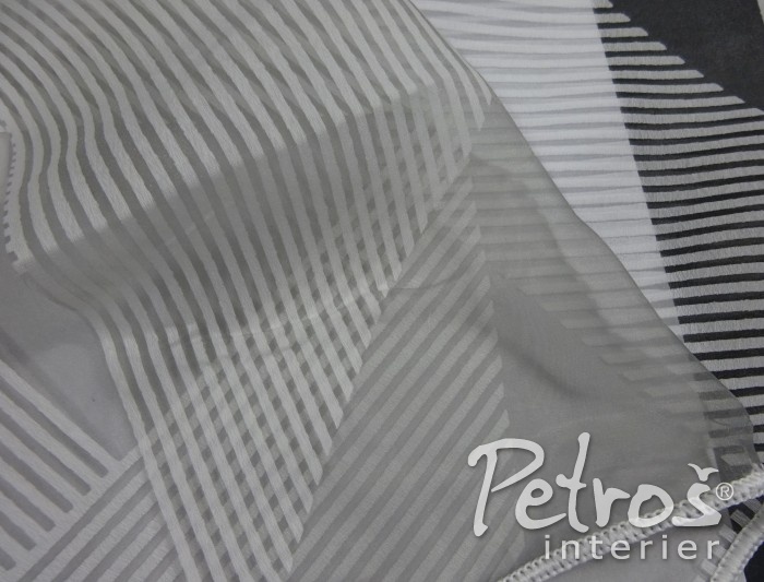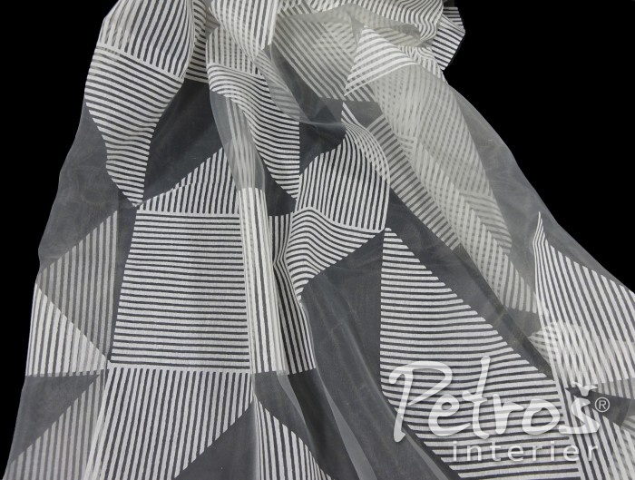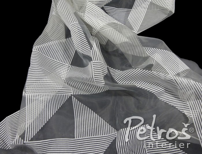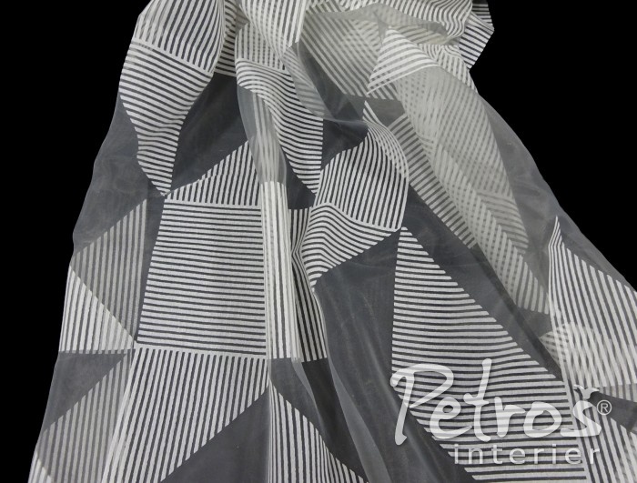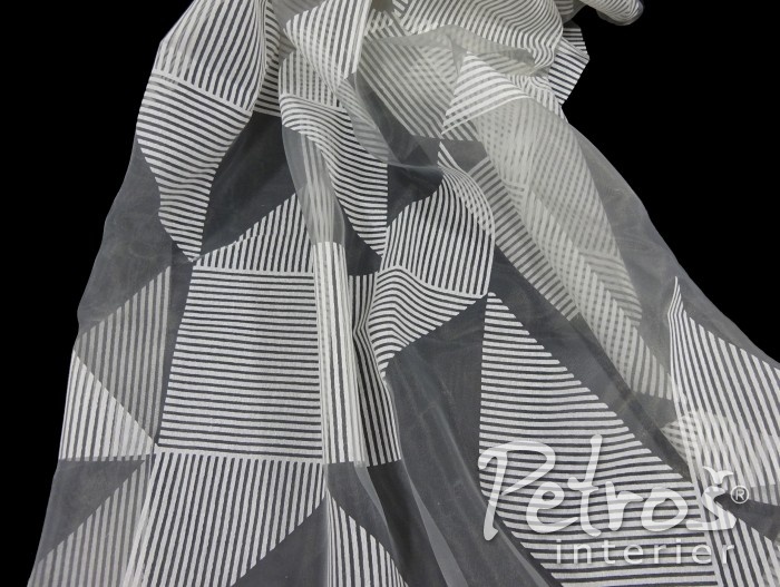 Základ záclony Mondo 3 tvoří kvalitní organza v kouřové barvě a na ní je geometrický vzor v přírodně bílé barvě. Tyto krásné a elegantní záclony vyniknou především v moderních a ultramoderních interiérech.