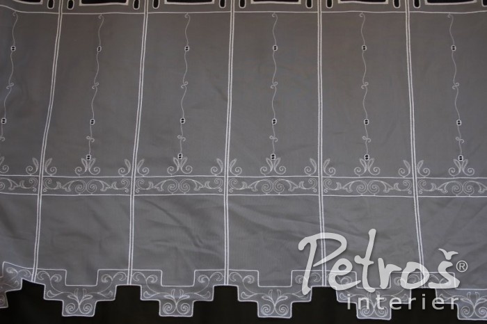 Tyto vitrážkové záclony mají originální spodní okraj v geometrickém tvaru. V nabídce jsou ve výšce 60 centimetrů.