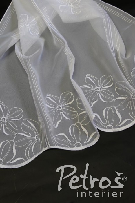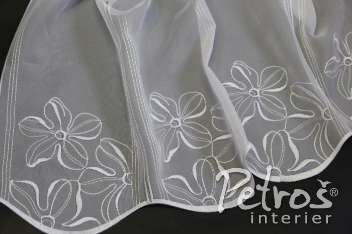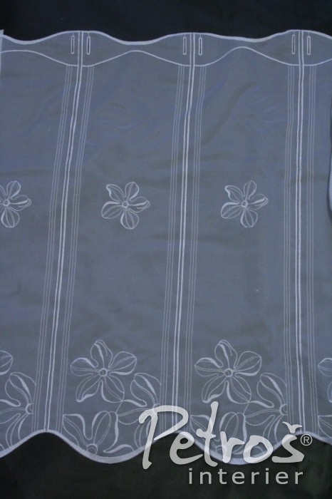 Vitrážkové záclony 10535/00 jsou zdobeny jemným květinovým motivem. Nabízíme je i ve smetanovém odstínu.