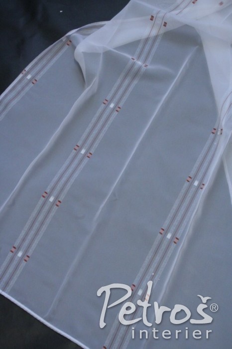 Tyto voálové záclony mají jednoduchý geometrický vzorek uspořádaný do svislých proužků. Záclony jsou vhodné i na římské rolety. K dostání jsou pouze do vyprodání zásob.