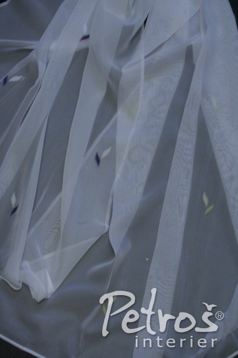Tyto voálové záclony jsou zdobeny motivem drobných barevných lístků. Záclony jsou k dostání ve dvou barevných variantách a ve výškách 260 a 300 centimetrů.