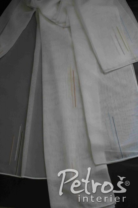 jsou vyrobeny ve čtyřech barvách. Vzor tvoří barevné čárky na voálovém podkladě.