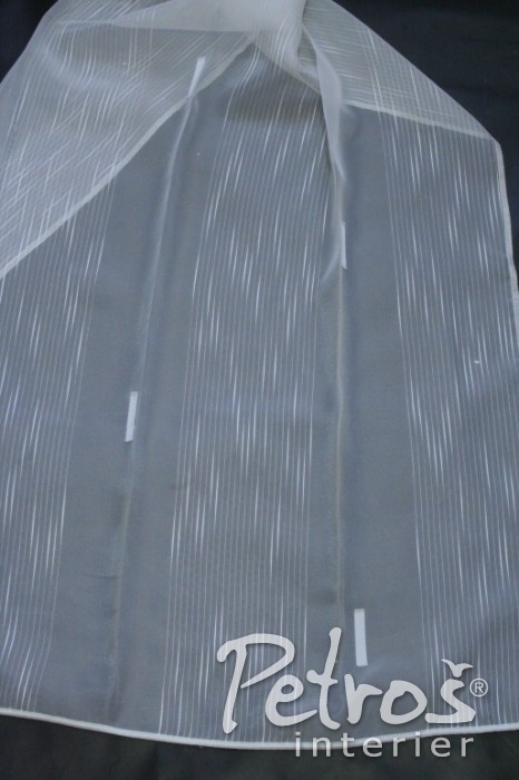 Tyto voálové záclony mají podklad v krémové barvě a zdobené jsou jemnými proužky a čárkami ve stejném tónu.