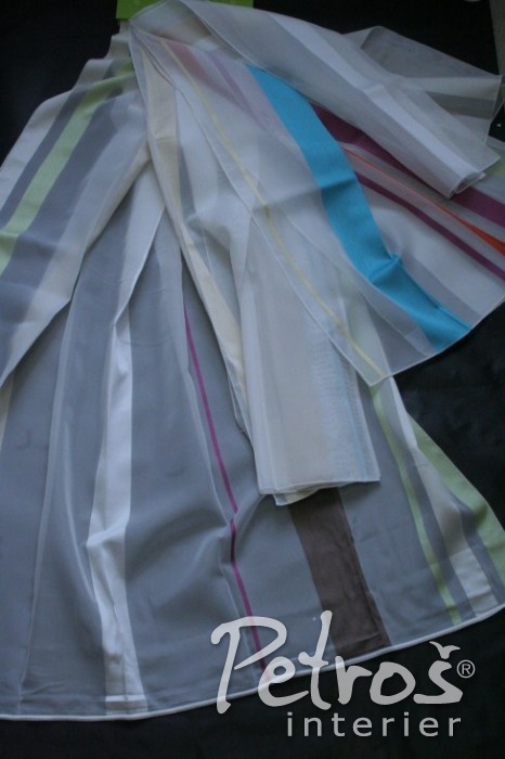 Pestrobarevné pruhované voálové záclony Chic si můžete vybrat ve třech barevných variantách. Vyrobeny jsou ve výšce ve výšce 300 centimetrů.