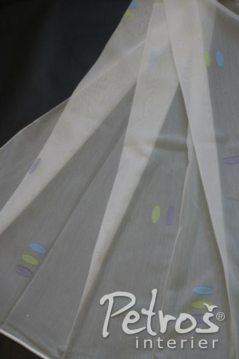 Voálové záclony Galaxis mají vzorek drobných barevných oválků. Svou barevností se skvěle hodí do dětských pokojů, využití ale mohou najít i v jiných interiérech. K dostání jsou tyto záclony ve výškách 180 a 300 cen­timetrů.