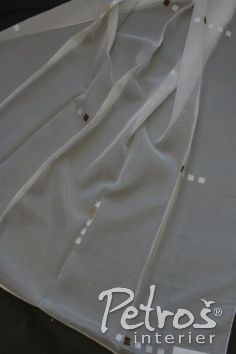 Voálové záclony Jupiter s geometrickým vzorkem v barvách bílé, béžové a hnědé, si můžete vybrat ve výškách 180 a 300 centimetrů.