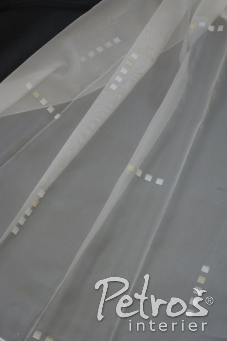 Voálové záclony Jupiter s geometrickým vzorkem v barvách bílé a smetanové, si můžete vybrat ve výškách 180 a 300 centimetrů.