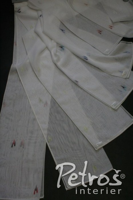 Tyto bílé voálové záclony mají drobný vzorek barevných kapiček. Záclony jsou k dostání jsou ve čtyřech výškách a v osmi barvách. Využití najdou jak v dětských a studentských pokojích, tak i v dalších místnostech.