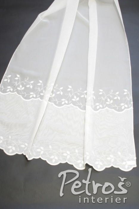 Tyto záclony jsou hladké a v dolní části je zdobí jemně vyšívaná bordura. Záclona má hustěji tkaný voálový podklad v krémové barvě.