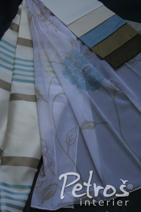 Pruhované závěsy Gianni 8–1790–080 je možné dobře zkombinovat s jednobarevnými závěsy Tyler 8–3114–080 nebo se záclonou Coco 8–4704–080.