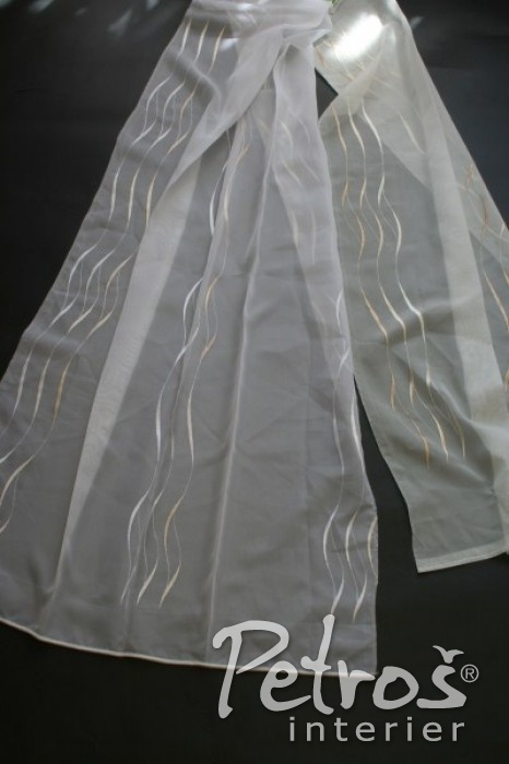 Vyšívané záclony 204094 jsou vyrobeny v bílé a krémové barvě. Tyto záclony jsou zdobeny jemnou výšivkou barevných vlnek.