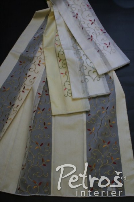 Luxusní vyšívané záclony Elodie jsou k dostání ve 4 barevných provedeních. Jemný barevně vyšívaný přírodní vzor na průhledné zácloně se střídá s hustěji tkanými hladkými pruhy bez výšivky.