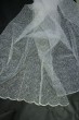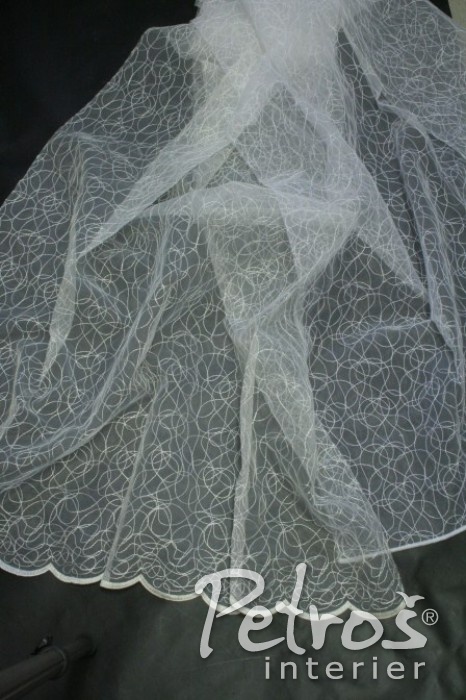 Bílé vyšívané záclony 109234 ve výšce 270 cm jsou zakončeny olůvkem. Krémově bílé vyšívané záclony 109235 ve výšce 265 cm jsou zakončeny ozdobným okrajem. Oba typy záclony jsou zdobeny jemným geometrickým vzorem.