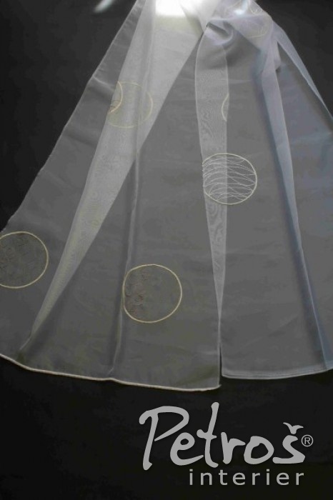 Tyto vyšívané záclony mají voálový podklad v bílé nebo krémové barvě. Zdobeny jsou výšivkou s geometrickým vzorem.
