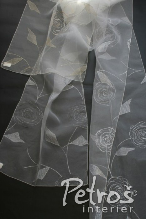 Vyšívané záclony s květinovým motivem si můžete vybrat ve třech barvách – bílé, přírodní bílé a smetanové.