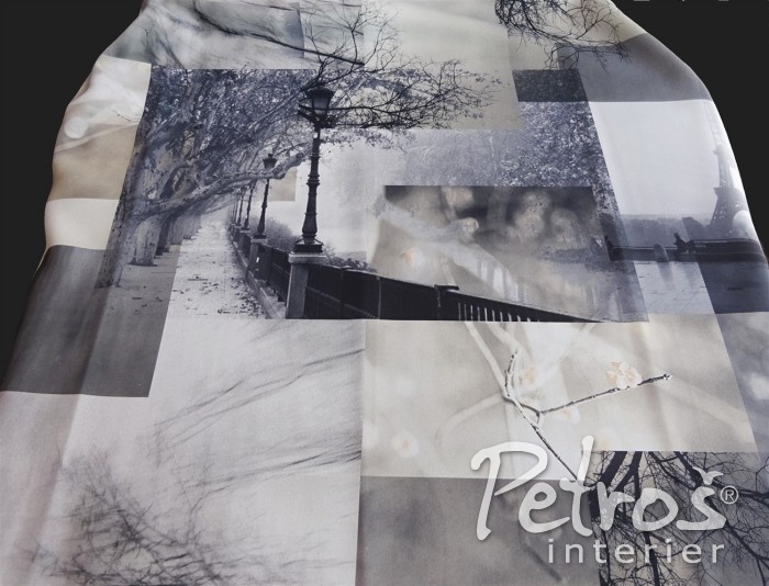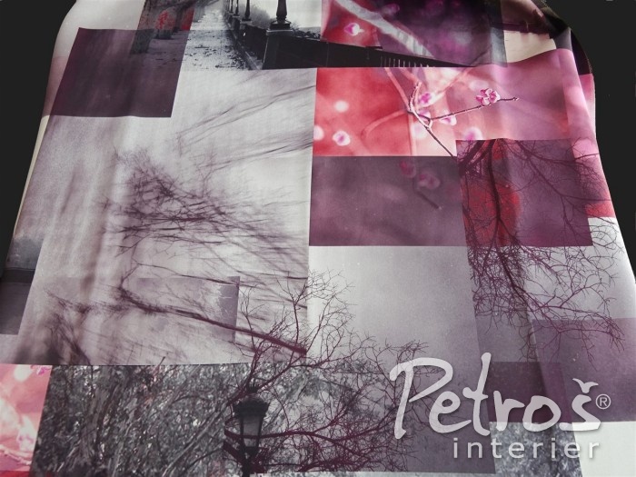 Blackoutové závěsy Jaro s krásným potiskem časného jara v pařížských ulicích si můžete vybrat ve dvou barevných variantách – starorůžové a šedobéžové.