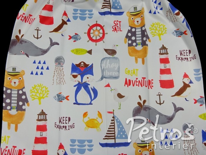 Tyto krásné dětské blackoutové – zatemňovací závěsy Velké dobrodružství mají tištěný barevný dětský vzor na světlešedém podkladu. Z rubové strany jsou jednobarevné světle šedé. Látka je měkká a splývavá. Údržba je jednoduchá, tyto závěsy se dají prát ve vlažné vodě. Závěsy jsou vyrobeny jsou v šíři 150 cm.