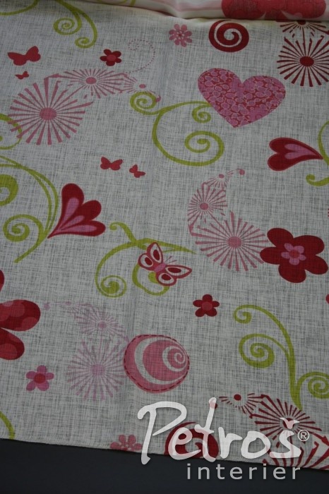 Lehké dětské závěsy Pavia s potiskem v zeleno růžových odstínech jsou vhodné i na římské rolety a japonské stěny. Závěsy jsou vyrobeny ve výšce 300 centimetrů. Ve stejném designu si nyní můžete vybrat i záclony (sekce dětské záclony).