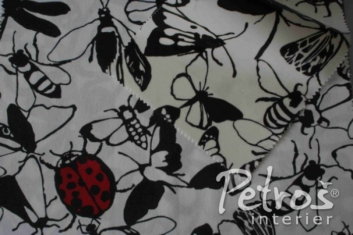 mají potisk s motivem motýlů v černé a sytě červené barvě na
