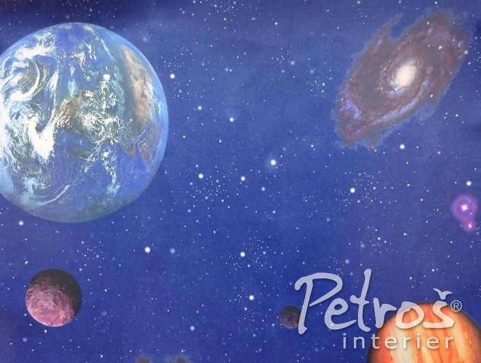 Cosmic nabízíme v šíři 150 cm. Podkladová barva je sytá tmavě modrá.