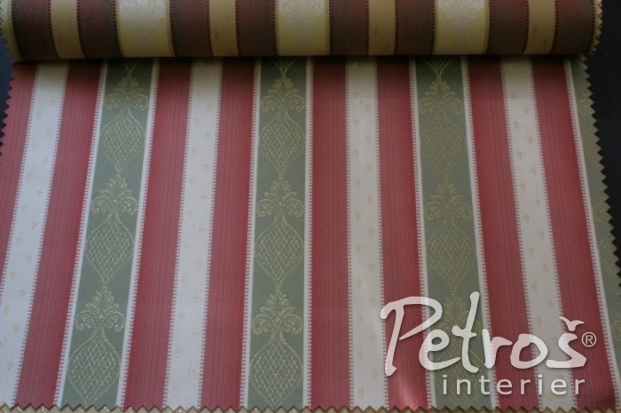 Tyto nehořlavé závěsy Princess mají klasický vzor uspořádaný do pruhů v kombinaci barev béžové, zlaté a tmavě červené. Závěsy jsou vyrobeny v šíři 140 centimetrů.
