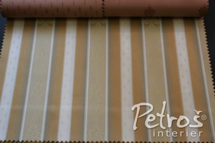 Tyto nehořlavé závěsy Princess mají klasický vzor uspořádaný do pruhů v kombinaci barev zlaté a béžové.