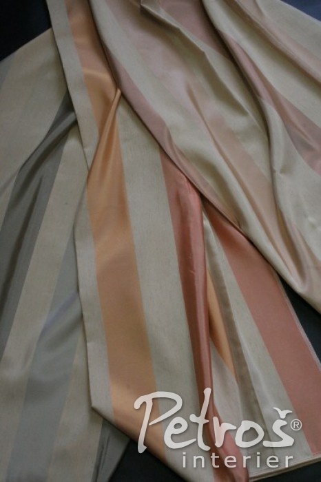 Tyto měkké pruhované závěsy v teplých přírodních