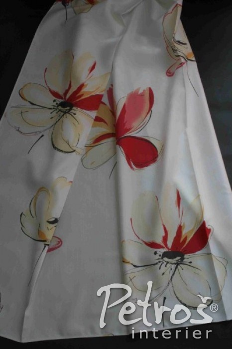 Tyto lehké splývavé vzorované závěsy jsou zdobeny květinovým motivem, v němž převažuje oranžovo-červená barva. Závěsy jsou k dostání už jen do vyprodání zásob.
