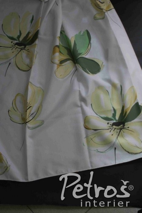 Lehké vzorované závěsy 108334–05 jsou zdobeny květinovým motivem v odstínech zelené barvy. Závěsy jsou vyrobeny ve výšce 300 centimetrů.