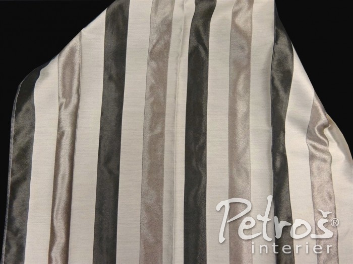 Závěsy Atena mají vzor řešený do zhruba 4,5 cm širokých pravidelných proužků, přičemž se v proužcích střídají přírodní barvy kamenů – režná (základní), středně béžová a tmavě hnědá. Béžové a hnědé proužky navíc odrážejí metalické odlesky. Tyto závěsy pro svou rafinovanou jednoduchost a decentní barevnou škálu krásně vyniknou v moderních a ultramoderních interiérech. Zajímavě však mohou vypadat i v některých přírodních interiérech.