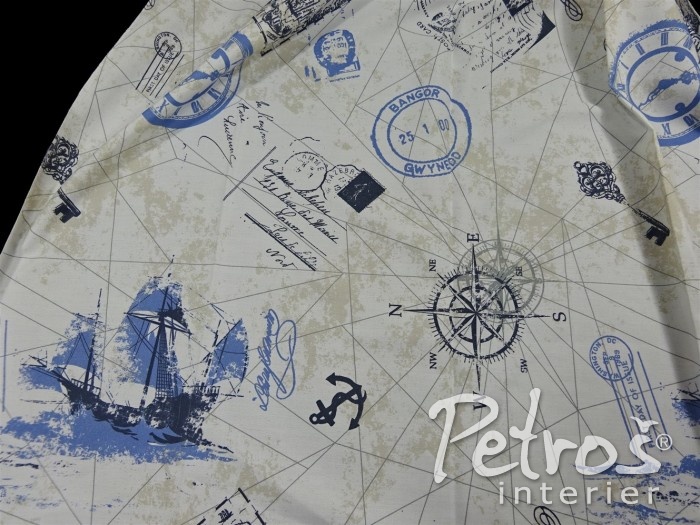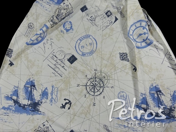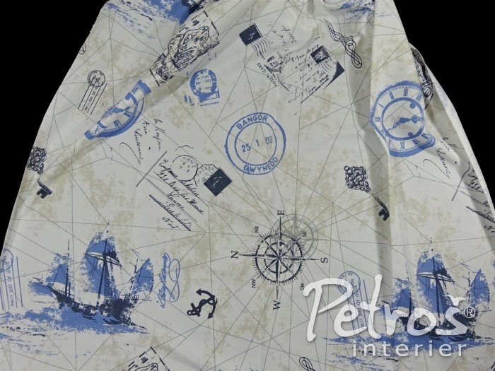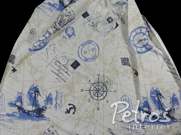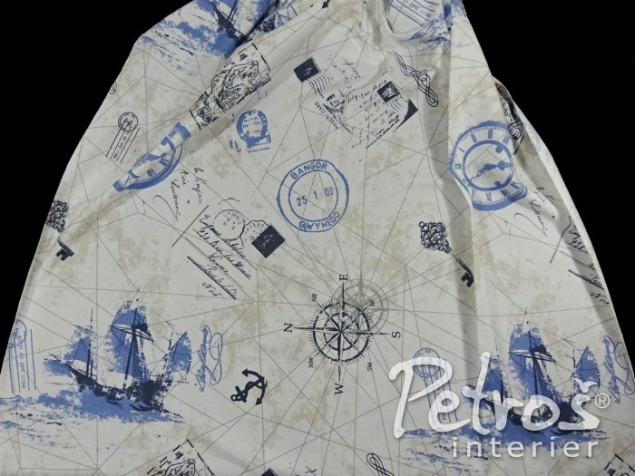 Závěsy W 8445 jsou vyrobeny ve třímetrové výšce. Na přírodně bílém podkladu je tištěný vzor s motivem plachetnic a námořního cestování. Základní barva vzoru je světlemodrá, doplňkově jsou ve vzoru použity odstíny šedé a velmi nenápadné béžové. Tyto závěsy je možné šetrně prát. Závěsy W 8445 se hodí do dětských pokojů, zejména pak pro starší děti, ale i do ostatních místností.