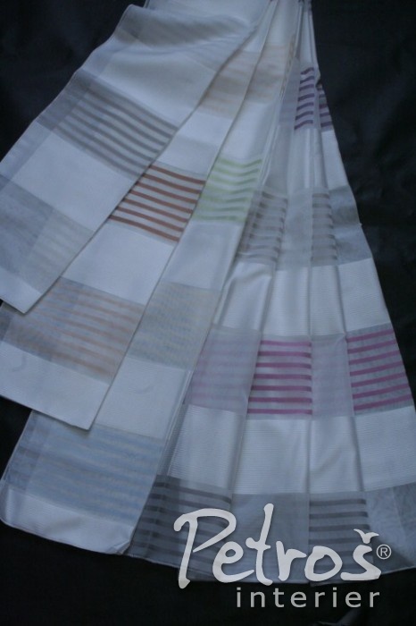 Lehké poloprůhledné pruhované závěsy Look si můžete vybrat ve čtyřech barevných variantách. Tyto závěsy se dají použít i jako hutnější záclony. Světlé hustěji tkané pruhy se zde střídají s průhlednými a jemně barevnými proužky.