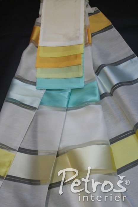 Lehké poloprůhledné závěsy (In between) Saturn jsou s proužky a lehké závěsy Pluto jsou jednobarevné. Oboje tyto závěsy se dají použít i jako hustější záclony.